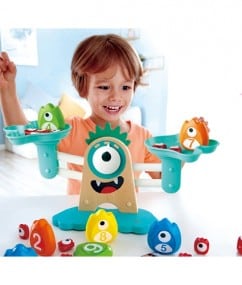 Placez les petits poids monstres sur la balance et, avec cette drôle de famille de monstres, familiarisez-vous avec l’arithmétique simple, y compris les poids, les dimensions et la balance !