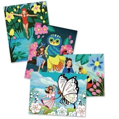 L’art avec les chiffres, une activité de peinture ludique de la marque française Djeco. Coloriez les quatre images préimprimées des demoiselles à l’aquarelle et elles deviendront de véritables tableaux dont vous serez fier!