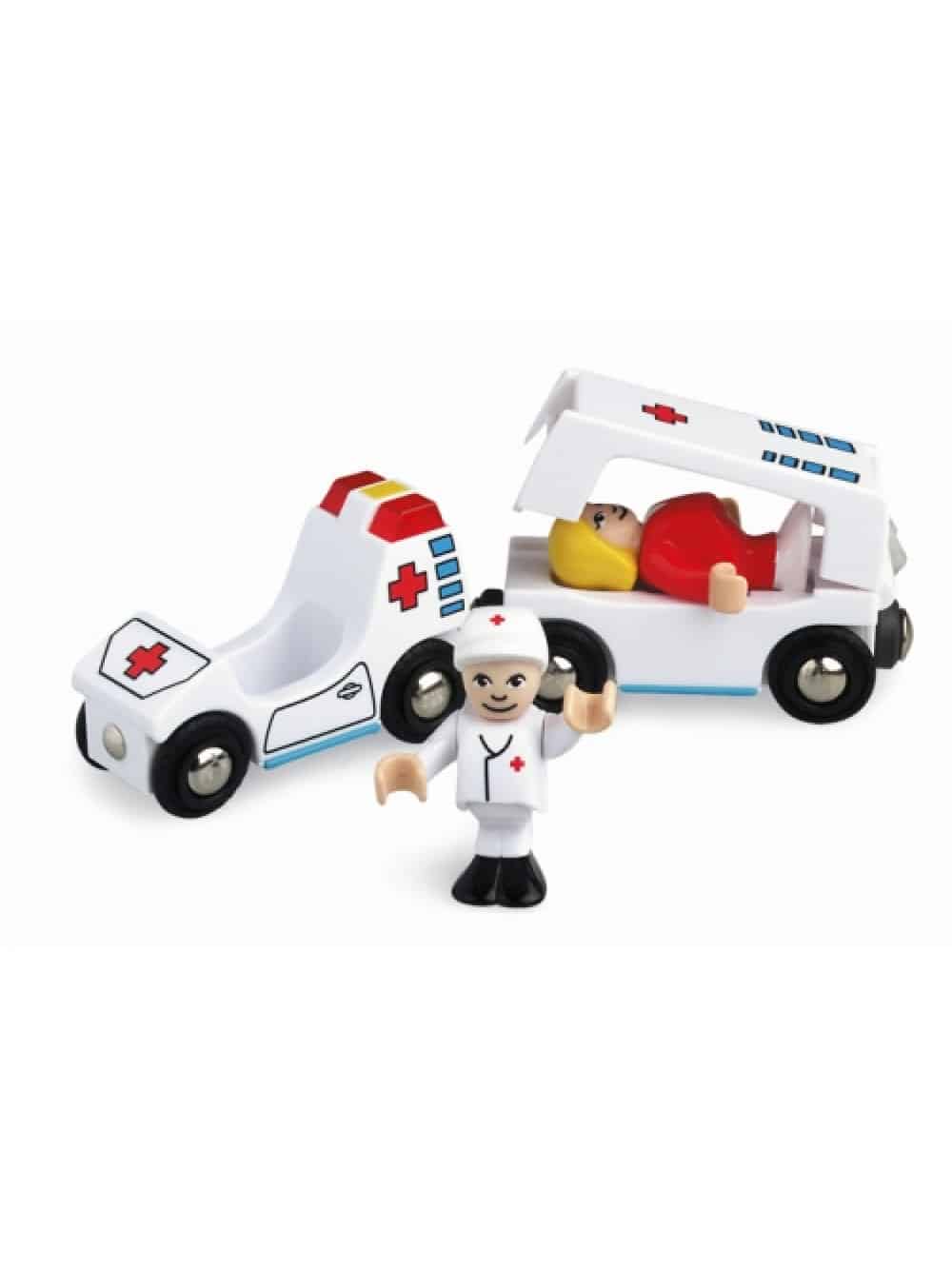 Les accidents, ça arrive. C’est alors que l’ambulance de Brio se présente. Cette ambulance a un toit qui peut être ouvert et lorsque l’on appuie sur le bouton situé sur le toit de la voiture, les lumières s’allument et les alarmes se déclenchent. Convient aux enfants dès l’âge de 3 ans.