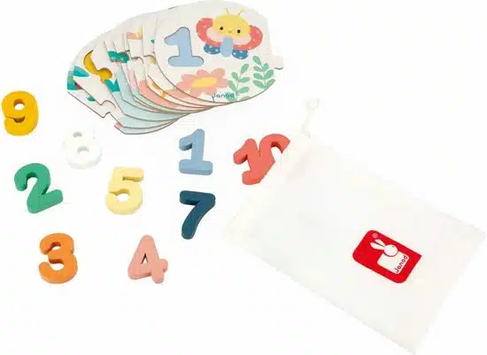 De dieren hebben de opdracht gekregen om het tellen tot 10 leuker te maken voor kleintjes vanaf 2 jaar. Zodra deze mooie pastelkleurige puzzel van 10 stukjes klaar is, is de volgende activiteit om elk cijfer op de juiste plaats te leggen.