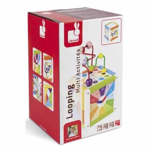 Multifunctionele looping met: een spiegel, een doolhof zodat het fruit en de groenten teruggevonden kan worden, een magnetisch tangram, een klok voor het leren klokkijken en een telraam voor de ontwikkeling van de concentratie en motoriek. Geschikt voor peuters vanaf 12 maanden. Een vrolijk gekleurde activiteitenbox met een looping die er uitgehaald kan worden en omgekeerd in de box gedaan kan worden. Erg makkelijk om het zo op te bergen.
