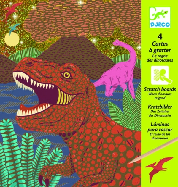 Een wonderlijke krasset van het merk Djeco. Kras voorzichtig de donkergrijze laag weg en er verschijnt een kleurrijke prent met leuke motiefjes en details.