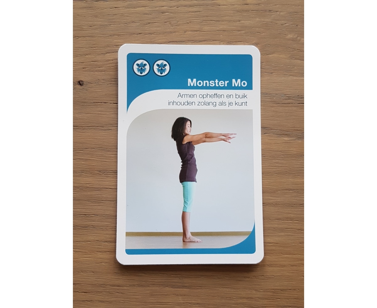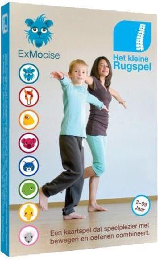 Het Kleine Rugspel is gericht op het voorkomen van afwijkingen in houding en training van het totale bewegingsapparaat.Op 32 speelkaarten tonen 8 dieren telkens 4 oefeningen. In de spelhandleiding worden verschillende spelvarianten uitgelegd die zowel individueel als voor een groep te gebruiken zijn.Het spel kent 4 moeilijkheidsgraden die naar leeftijd of ambititeniveau gebruikt kunnen worden. Gebruik het spel om kinderen elke dag te laten bewegen. Speel gezond met de toekomst van je kinderen! Exmocise is door deskundigen ontwikkeld en door artsen aanbevolen. De gezonde actie-kaartspellen bieden therapeuten, begeleiders, ouders, verzorgers en leraren een handvat om kinderen in beweging te krijgen. Ze maken kinderen op een speelse manier bewust van hun gezondheid en bouwen aan hun conditie, controle en vertrouwen. De kaarten zijn snel en makkelijk te begrijpen en geven aandacht aan een specifiek probleemgebied