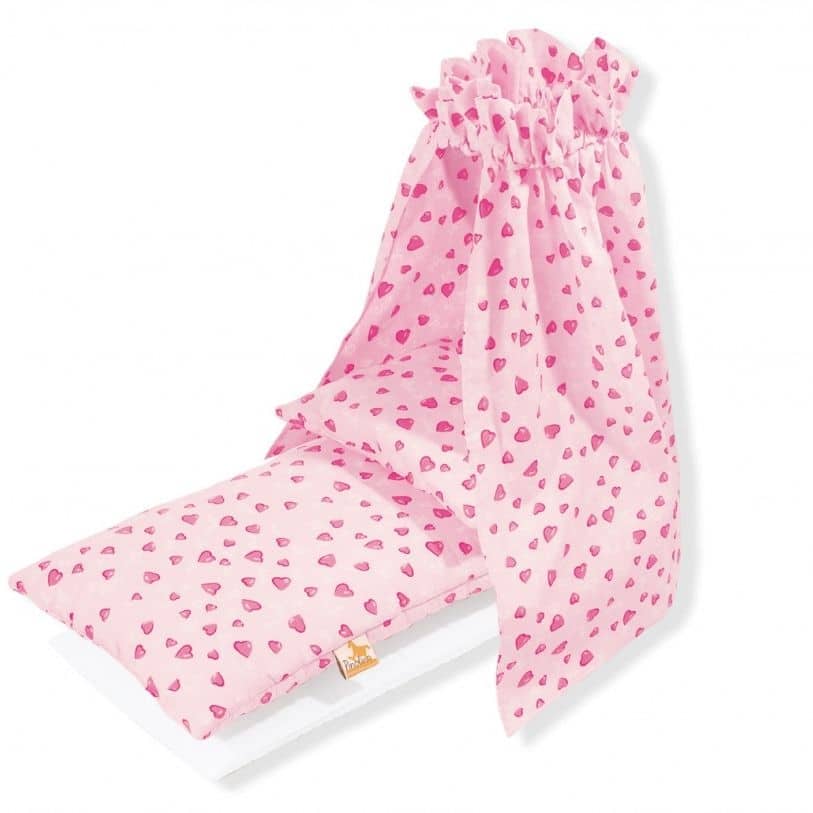 4-delige set bestaande uit een matras, dekbed, kopkussen en hemel. Wasbaar op 30°.