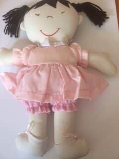 Stoffen lappenpop van Lilliputiens. Kleertjes kunnen uit.