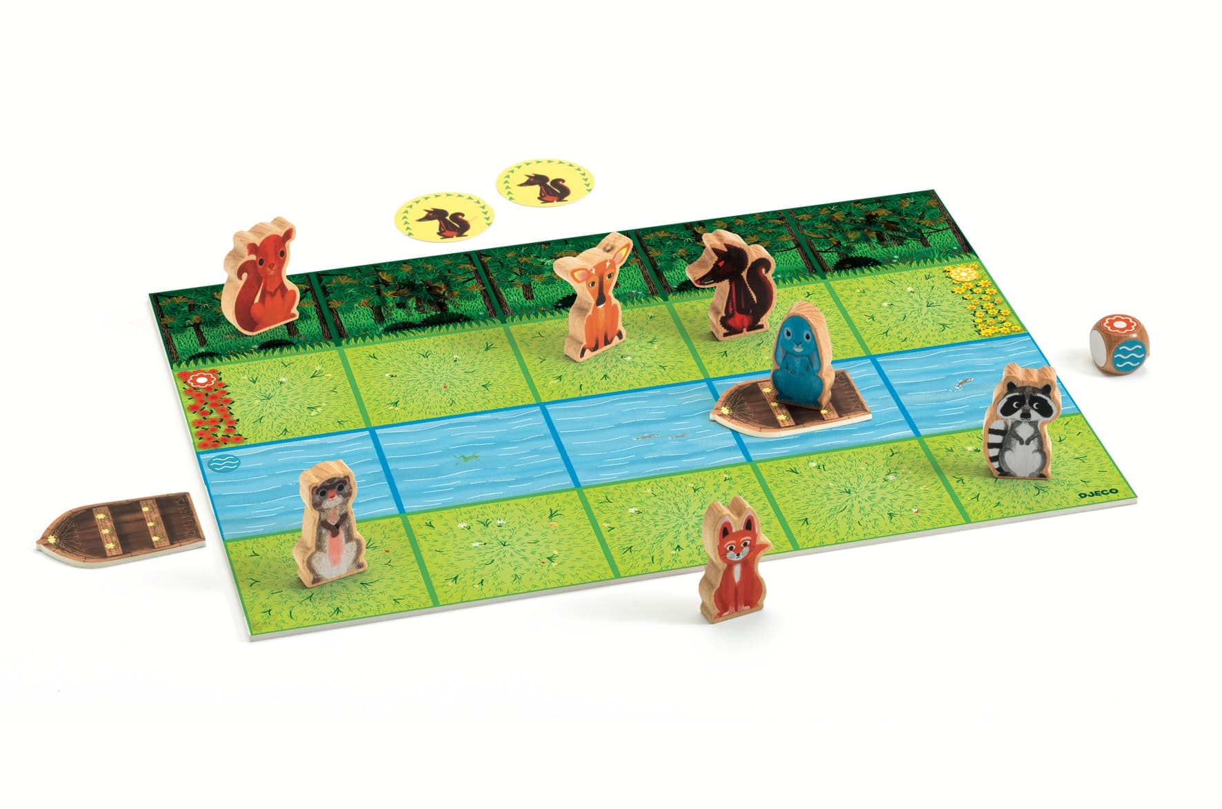 Het spel Potomac van Djeco is een spel waarbij de spelers moeten samenwerken om de dieren naar de overkant van de rivier te komen. Maar hoe doe je dat> De dieren kunnen met behulp van een vlot de rivier oversteken. Maar kijk uit dat je het dier niet laat uitstappen bij de wolf!
