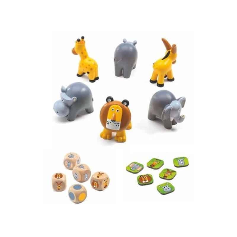 Dit spel van djeco is een snelheids – en waarnemingsspel. Houd je hoofd erbij! Moet je het dier pakken dat je op de dobbelsteen ziet of juist een ander dier? Een deductie – en snelheidsspel voor de allerjongsten.