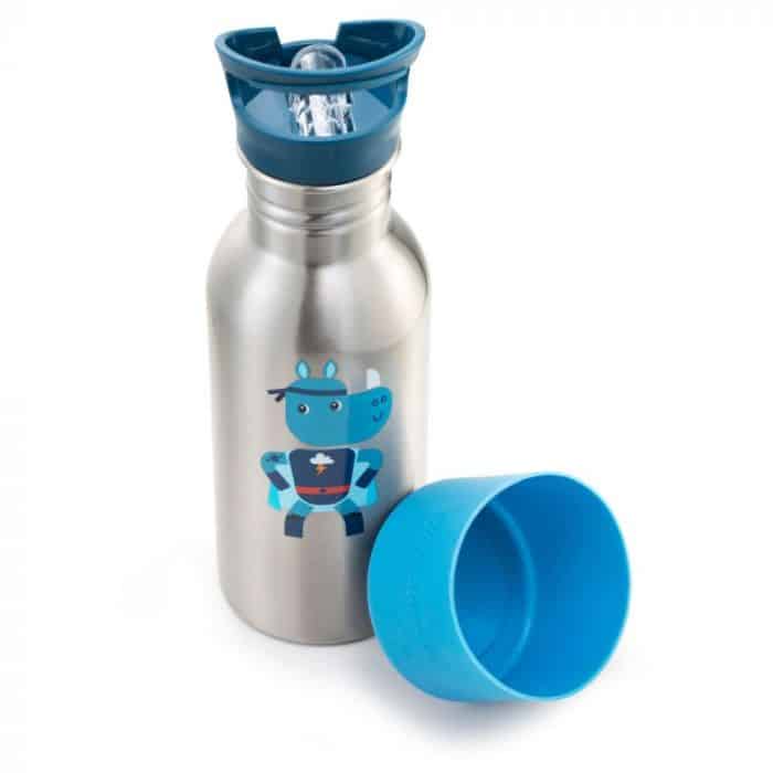 In deze drinkfles met handige drinkdop en zuigrietje van Lilliputiens, kan je 600ml water meenemen. Want ook stoere helden als Super Marius moeten regelmatig drinken.