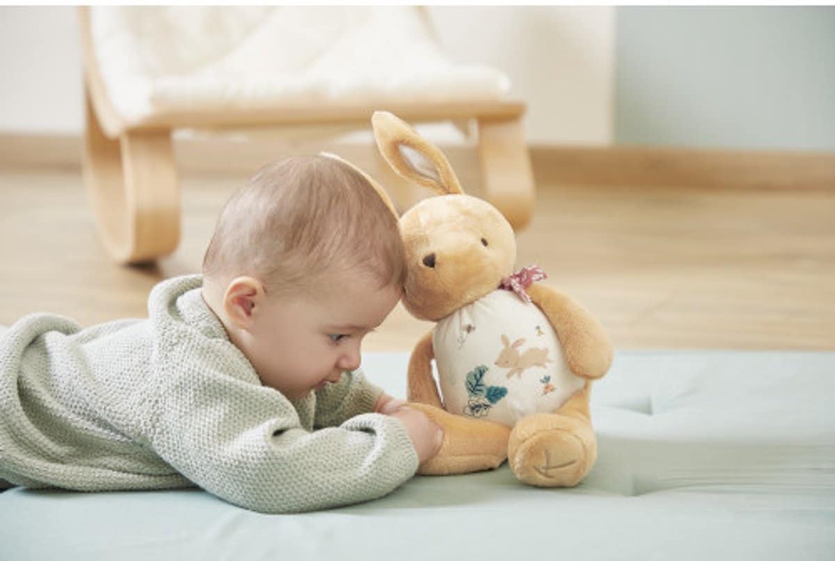 Dit zorgvuldig ontworpen geluidspluche speelgoed is gemaakt van microvelours, popeline en synthetisch bont, allemaal gemaakt van gerecycled polyester, inclusief de vulling: 86% gerecycled materiaal, voor een samenstelling zonder compromissen!