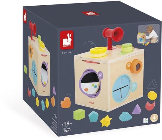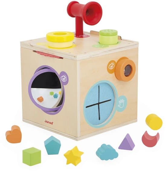 Stimuleer baby’s zintuigen met deze zintuigenkubus! Deze houten activiteitenkubus is geschikt voor kinderen en baby’s vanaf 18 maanden en stimuleert 4 van de 5 zintuigen. Hiermee kunnen kleintjes hun reukzin, gehoorzin, tastzin en gezichtsvermogen ontwikkelen – allemaal dankzij leuke activiteiten die in jouw gezelschap kunnen worden gedaan!